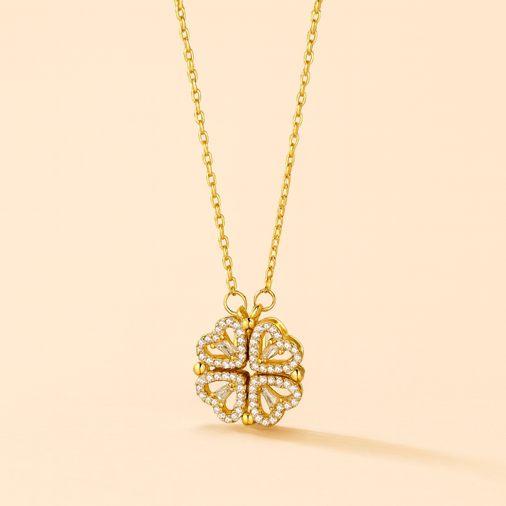 Il suo design delicato, ispirato al quadrifoglio con petali a forma di cuore, rappresenta amore, fortuna e armonia — un simbolo prezioso da indossare ogni giorno.